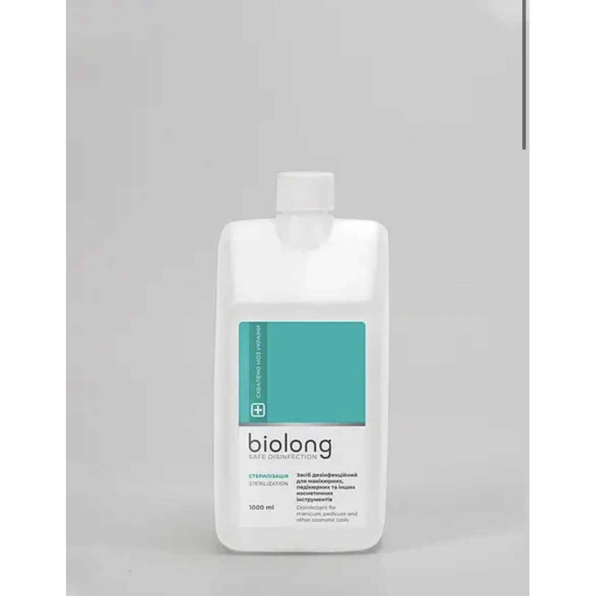 БіоЛонг засіб для стерилізації манікюрного, педикюрного та іншого інструменту 1000 мл - готовий до використання 20% розчин, ефективний відносно грам-негативних і грам-позитивних бактерій (в т. ч. мікобактерій туберкульозу), вірусів (у т. ч. Сніду, гепатиту, поліомієліту), грибів роду Кандида і дерматофітів, а також спороутворюючих бактерій не пошкоджує вироби зі сплавів металів, пластмаси, нержавіючої сталі, лакофарбових покриттів, шкіри, тканини, скла, дерева та інших.