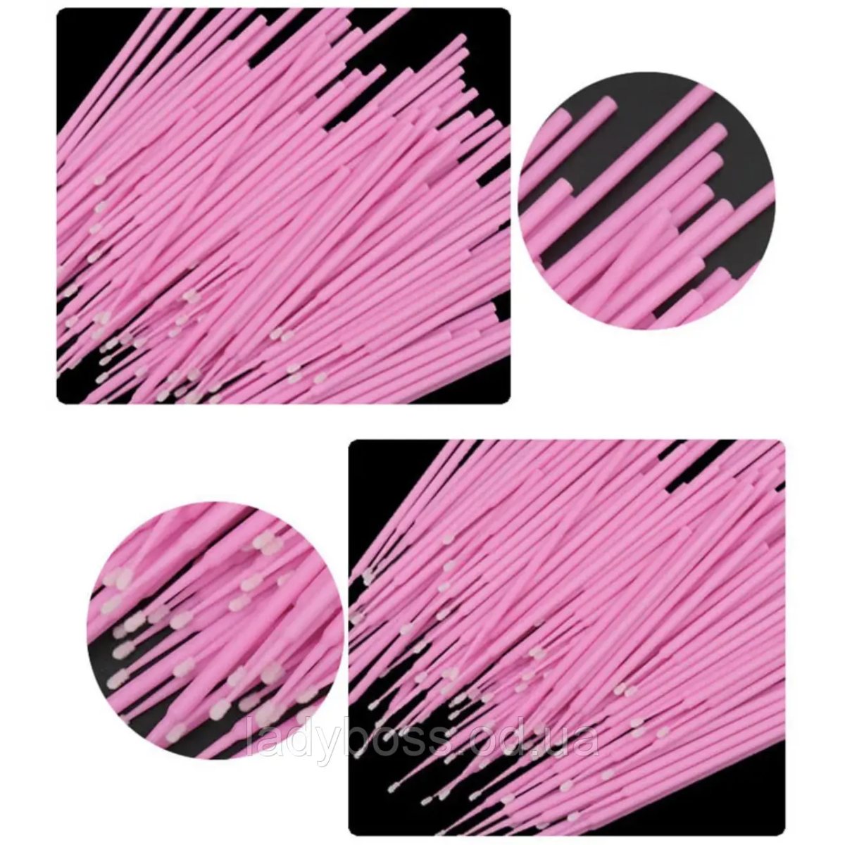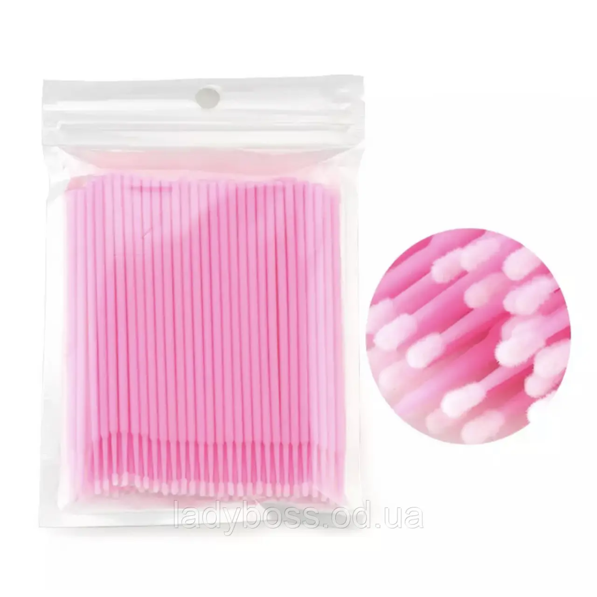 Одноразові мікробраші (мікроаплікатори) у пакеті для нарощування та ламінування вій, 100 шт./уп. Рожевий