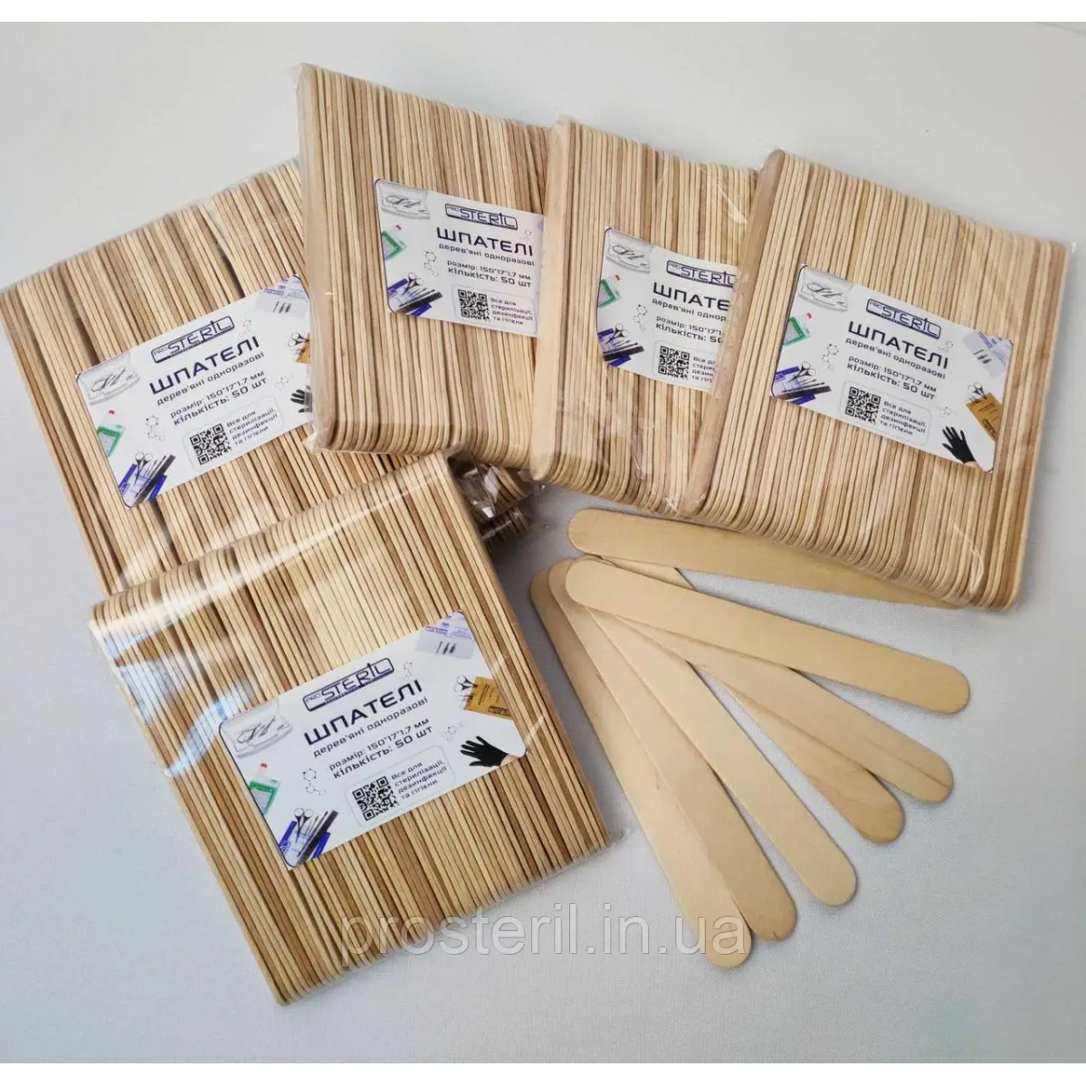 Шпателі дерев“яні в упаковці 1,7х15 см (50 шт/уп)