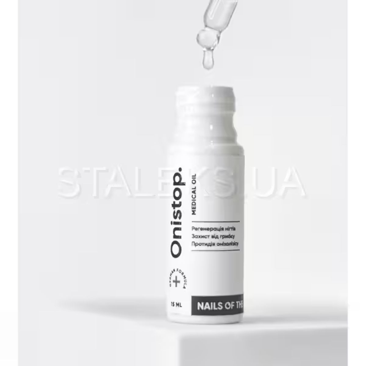 NAILSOFTHEDAY Onistop medical oil - засіб для лікування оніхолізису, який наноситься на шкіру та нігті. Поживна формула допомагає значно покращити їх стан, навіть коли проблема обмежується ламкістю та розшаруванням. У його складі діють олії зародків пшениці, чебрецю, евкаліпту, сосни. Якщо регулярно наносити масло для нігтів від оніхолізису, пластини відростатимуть міцними, здоровими і сяятимуть доглянутим виглядом.