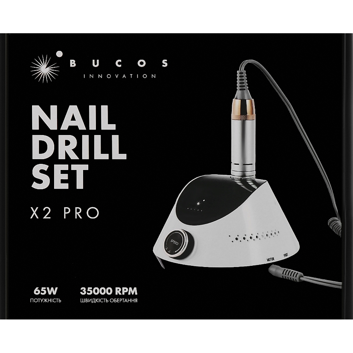 парат для манікюру BUCOS Nail Drill X2 PRO має стильний та ергономічний дизайн, який впишеться в будь-який інтер“єр салону краси, високу потужність 65 Вт, а також швидкість обертання 35 000 об/хв, яка легко дозволить виконати апаратний манікюр, корекцію та педикюр.
